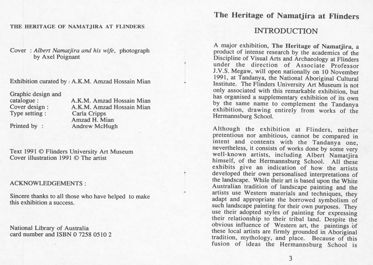 The ArtistsAlbert Namatjira 1991 Catalogue of 'THE HERITAGE OF NAMATJIRA AT FLINDERS'