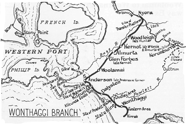 The ArtistsLocality map of Wonthaggi Branch - Victorian Railways